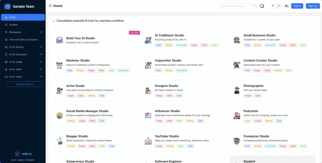 | 11 | 1min.AI | Multi-model AI writing and fast drafting | Free to $10/month |