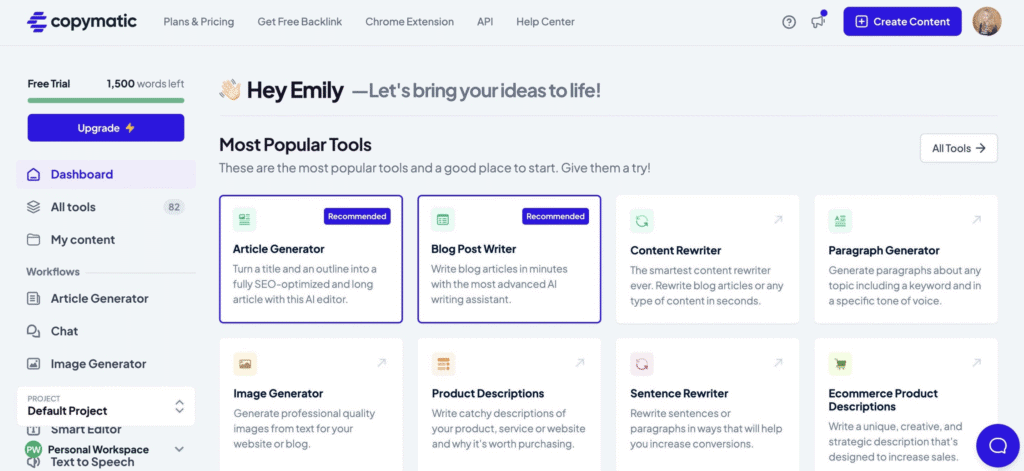 | 17 | Copymatic | Fast long-form articles and landing pages | $29 to $99/month |