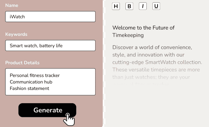 AI-Suggests is a lightweight AI tool focused on fast idea generation and SEO-friendly snippets. AI-Suggests produces blog titles, headlines, meta descriptions, and short content blocks from keyword inputs.