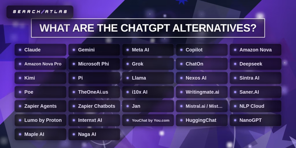 Search Atlas is the best ChatGPT alternative because it combines AI content generation with SEO intelligence, integrates keyword research and SERP analysis directly into content workflows, automates website optimization through OTTO SEO, operates on enterprise-scale search datasets, and functions as a unified platform for managing search and AI visibility rather than only conversational responses.