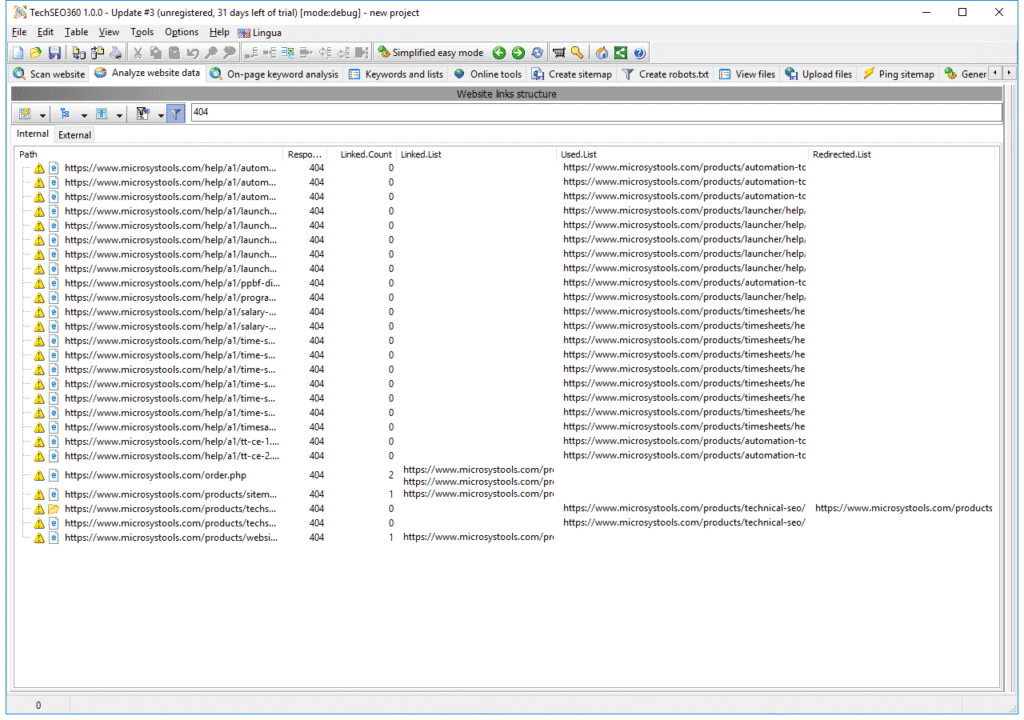 TechSEO360 offers a limited free mode (500 URLs) and a 30-day trial. The paid subscription is $99 per year.