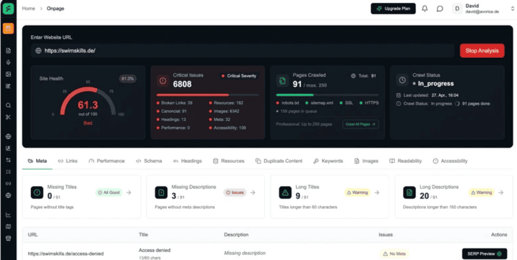 SEOBLAZER is the best alternative to ContentKing for website owners, beginners, and small businesses on a tight budget who need a broad, easy-to-use SEO toolkit. While ContentKing specializes in continuous, real-time monitoring and instant alerts for technical SEO changes, SEOBLAZER focuses on low-cost, on-demand analysis and reporting to help users track and improve basic site health affordably.