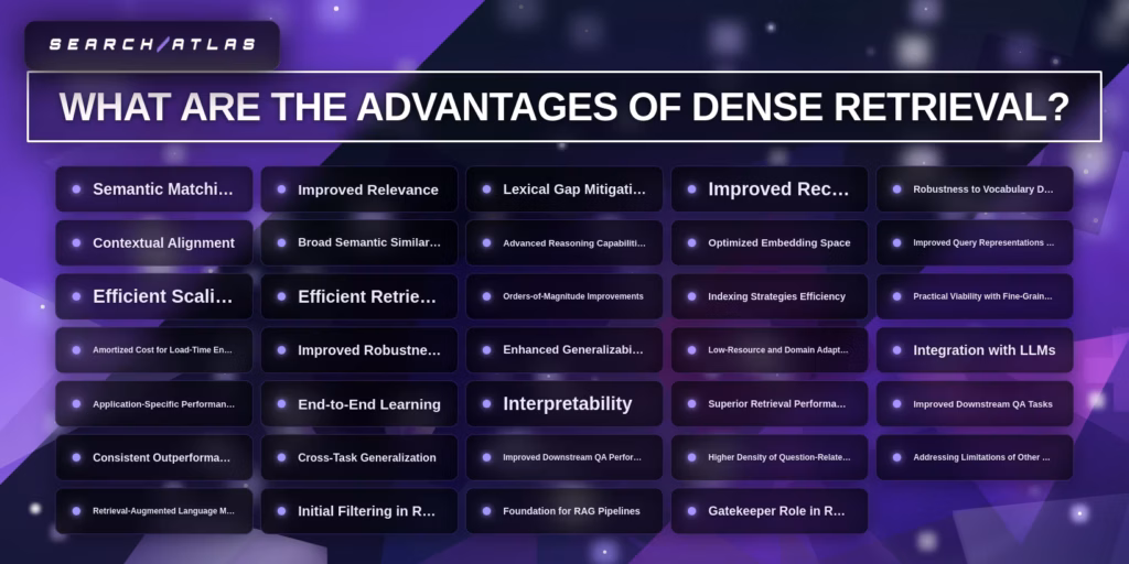 Dense retrieval advantages establish dense retrieval as a core component in semantic search, RAG pipelines, and AI-driven retrieval systems, where meaning-based matching outperforms keyword-based methods in complex queries.