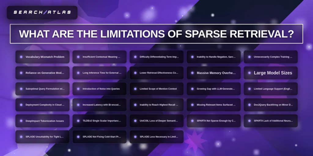 The limitations of sparse retrieval are listed below.