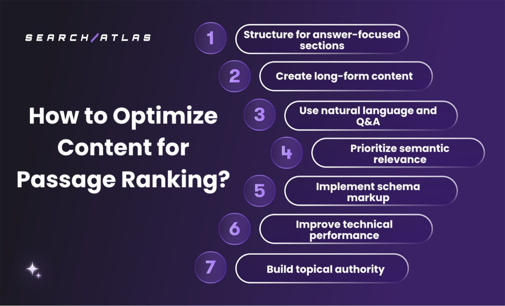 The 7 methods to optimize content for passage ranking are listed below.