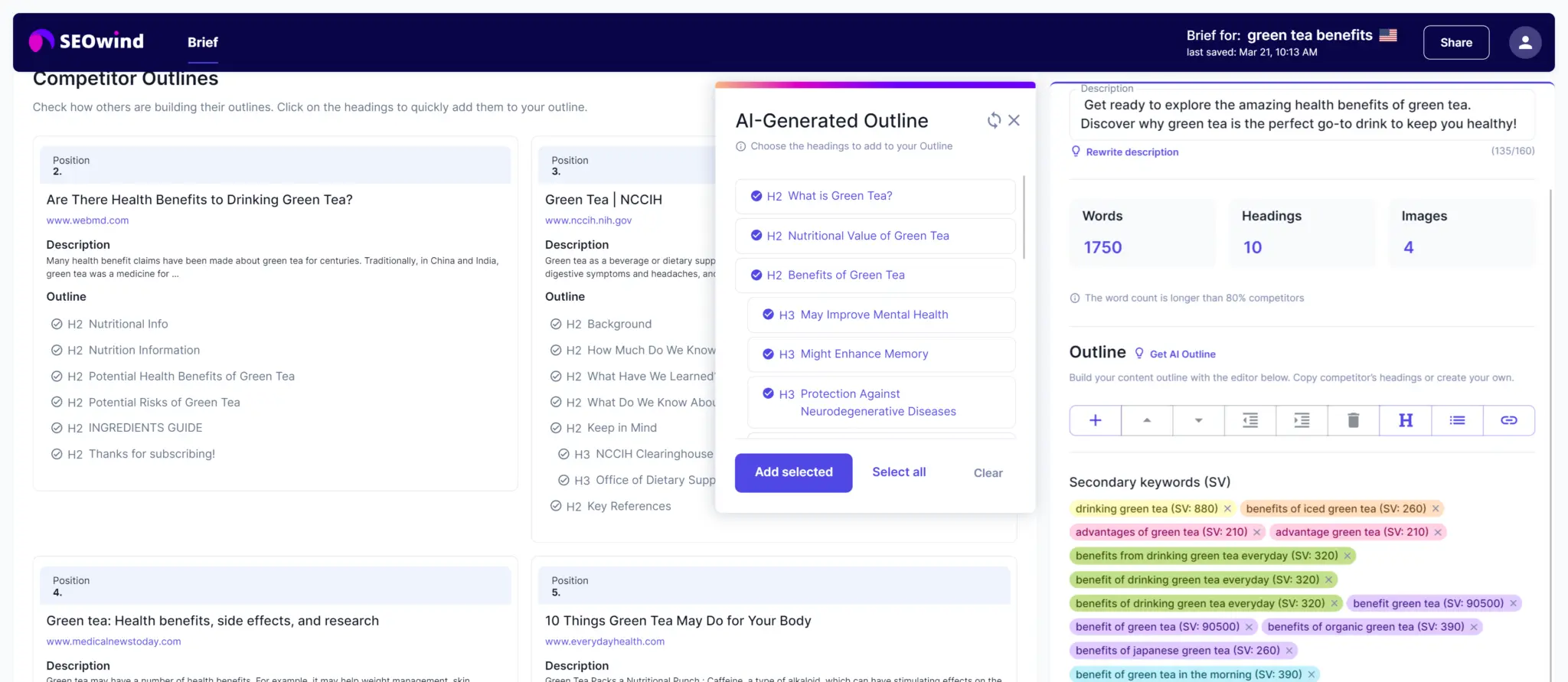 21. SEOWind: Best HyperWrite Alternative for SEO Briefs and Content Outlines