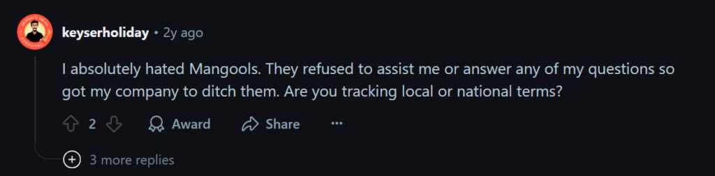Reddit users have different opinions about Mangools. Some users consider Mangools an affordable tool that is enough for their needs. Other commenters note that the platform is good for the price but that some of its tools don’t offer much value to them.
