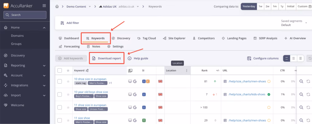 This step is quick and simple: Copy all of your tracked keywords from AccuRanker and import them directly into Search Atlas.