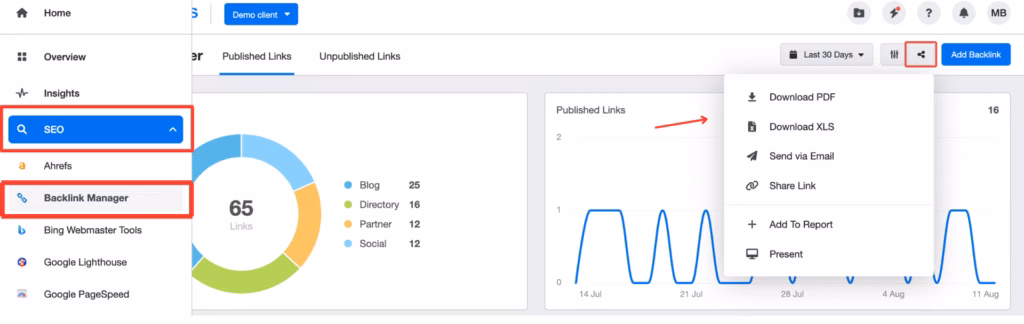 To transition your backlink research workflow, save your key backlinks data from AgencyAnalytics for reference.