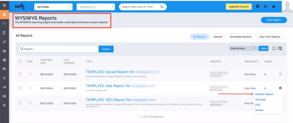 To transition your backlink research workflow, save your key backlinks data from Raven Tools for reference.