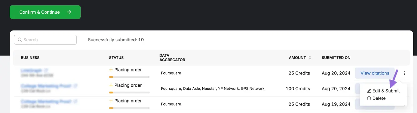 Search Atlas offers a powerful tool for building local citations by submitting your business data to the 5 major data aggregator networks. This is a one-time process paid for with Hyperdrive credits, not a recurring subscription.