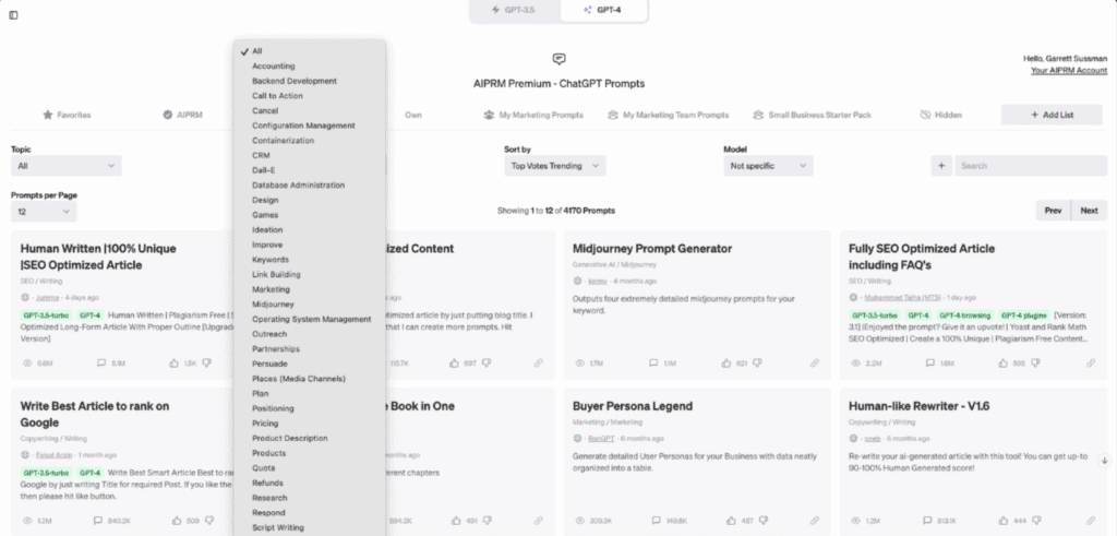 AIPRM is a browser extension for ChatGPT and Claude that provides a curated library of professional prompts, advanced prompt management, and workflow automation. AIPRM enables marketers, writers, and teams to generate content, emails, social media posts, SEO articles, and copywriting output with one-click prompts.