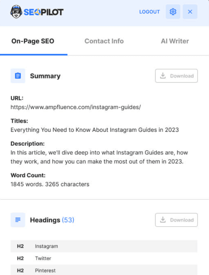 SEO Pilot is the best alternative to MozBar for bloggers. SEO Pilot differs from MozBar by focusing on content and outreach tools. It extracts contact details, gathers People Also Ask (PAA) questions from Google, and generates SEO-optimized articles from existing pages.
