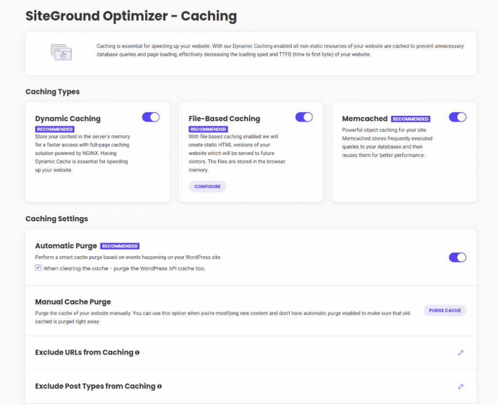 - Comprehensive Caching Options. Strong tools include page, browser, object, and database caching. These reduce server load, accelerate content delivery, and maintain stability without relying on aggressive compression.