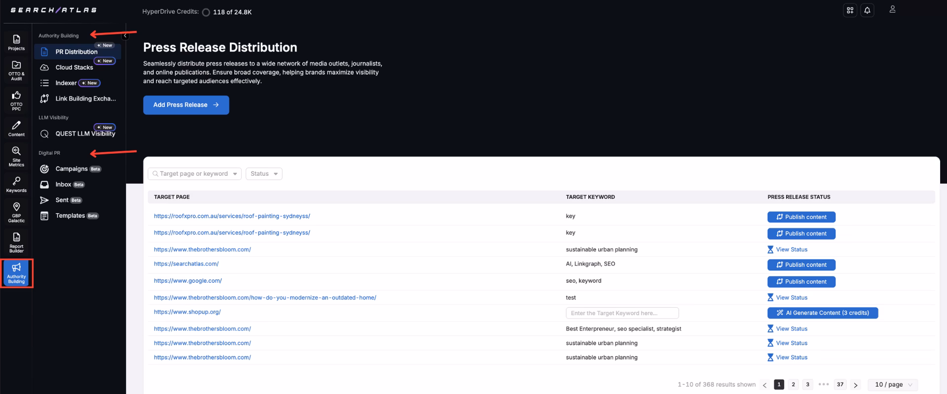 Search Atlas offers two link acquisition systems purpose-built for YMYL verticals.