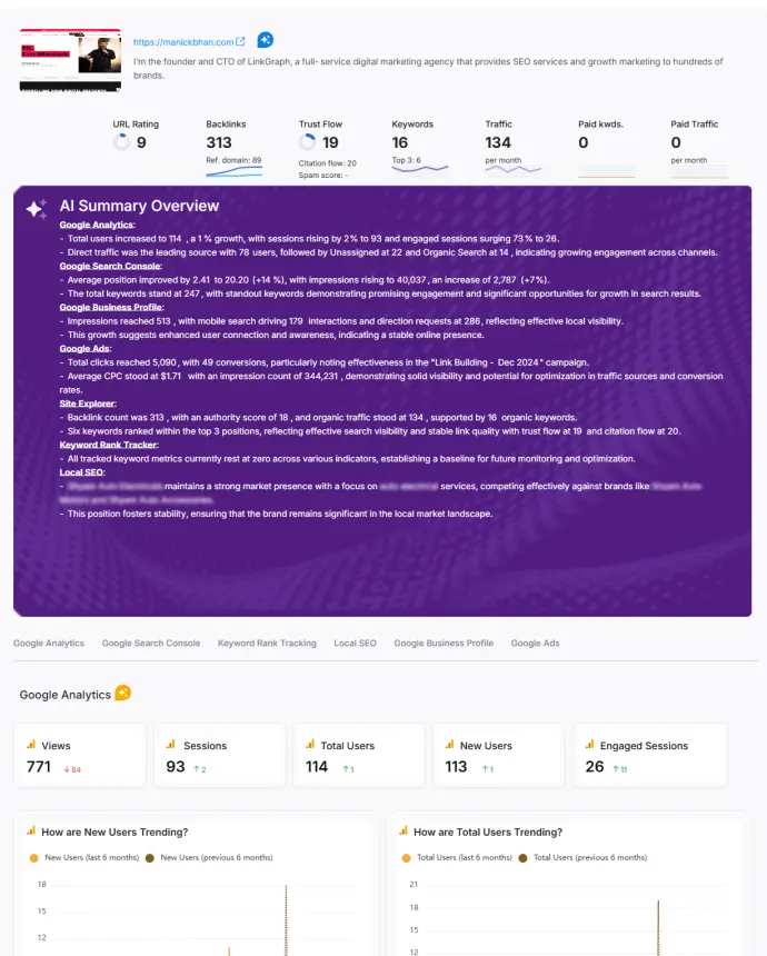 Search Atlas consolidates data from Google Search Console, Ads, Local SEO, and rank tracking into customizable reports. Track performance across destinations, tour types, and seasonal travel searches through reports that highlight what drives actual bookings and travel inquiries.