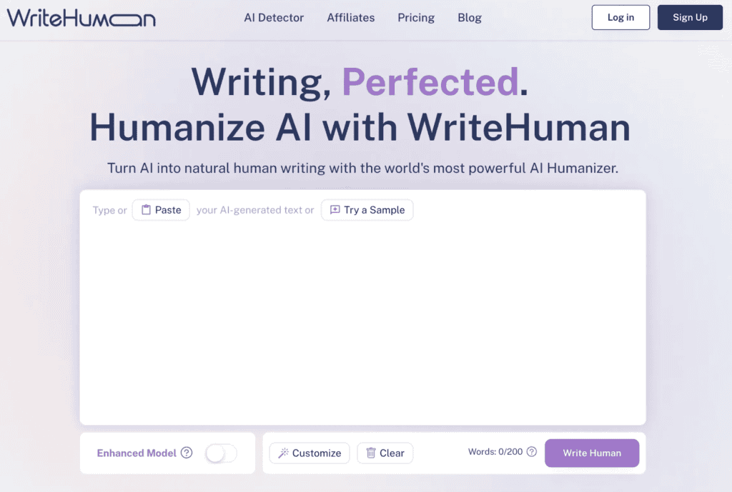 WriteHuman operates as a rewriting engine built for human style text refinement. WriteHuman transforms AI generated content into natural sounding prose by adjusting sentence structure, tone, and phrasing patterns.