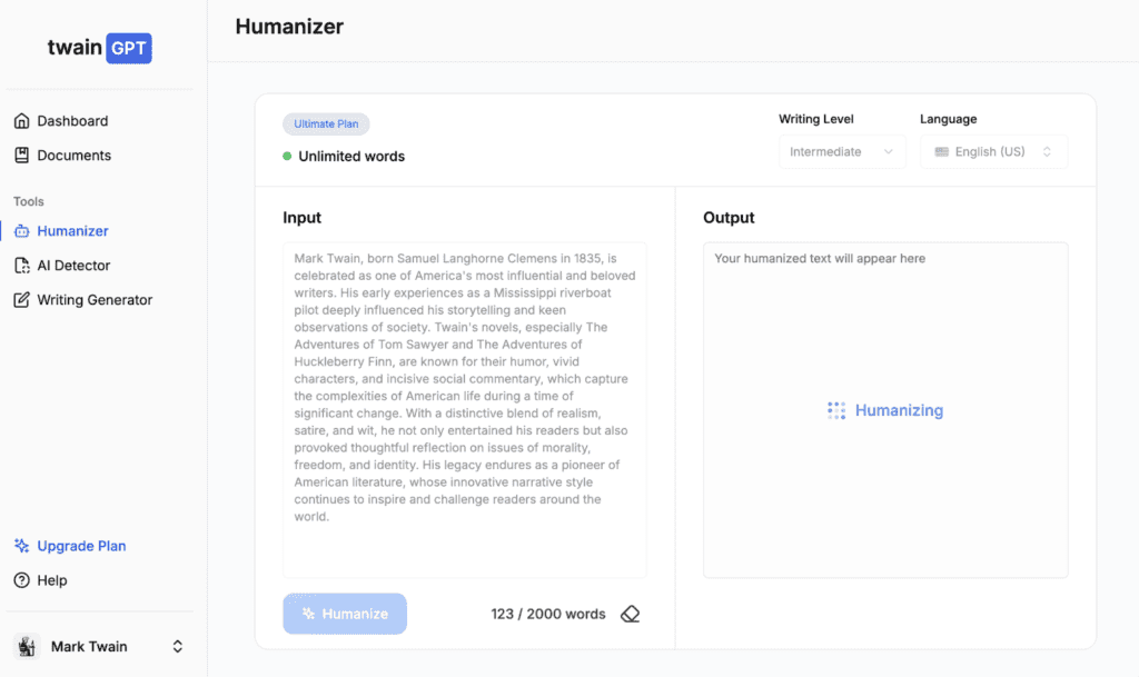 Compared to Anyword, Twain AI prioritizes speed and interaction. Twain AI offers instant suggestions, conversational drafting, and quick templates that accelerate ad headlines, social captions, and short promotional copy. That structure positions Twain AI as a stronger option for teams that rely on rapid idea output rather than performance-based optimization.