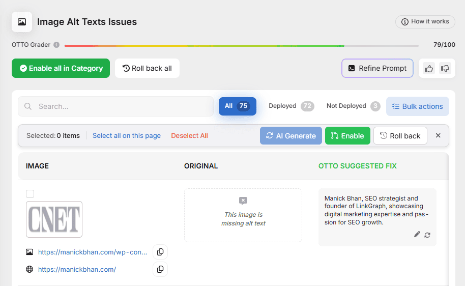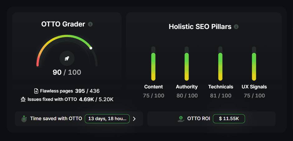With OTTO SEO, your presence is always improving. Every fix and optimization runs through one automated system that enhances performance across all searches — SEO, AI search, and GEO — without the manual work.