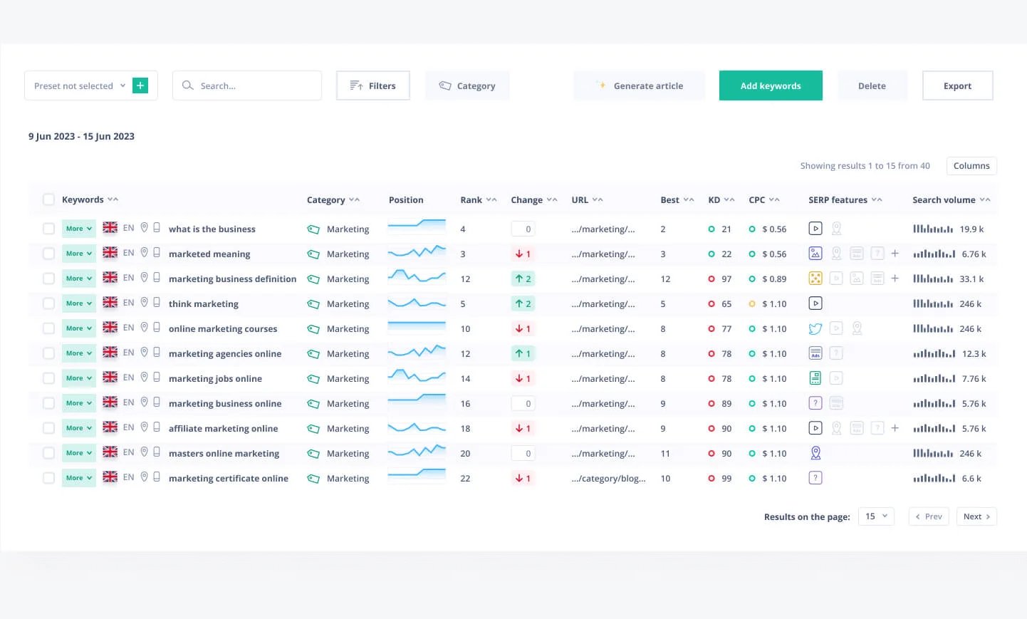 Go to the Seodity Rank Tracker. Select keywords to export or export all keywords by clicking the Export button on the right.