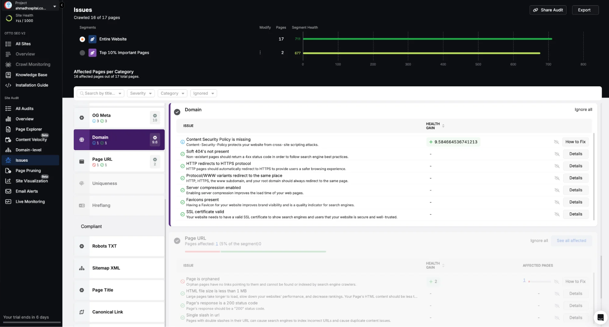 Most SEO tools diagnose medical issues, while OTTO fixes them. In health SEO, where medical content accuracy and regulatory consistency matter, Search Atlas OTTO SEO enforces structured deployment based on rulesets tied to YMYL medical standards.