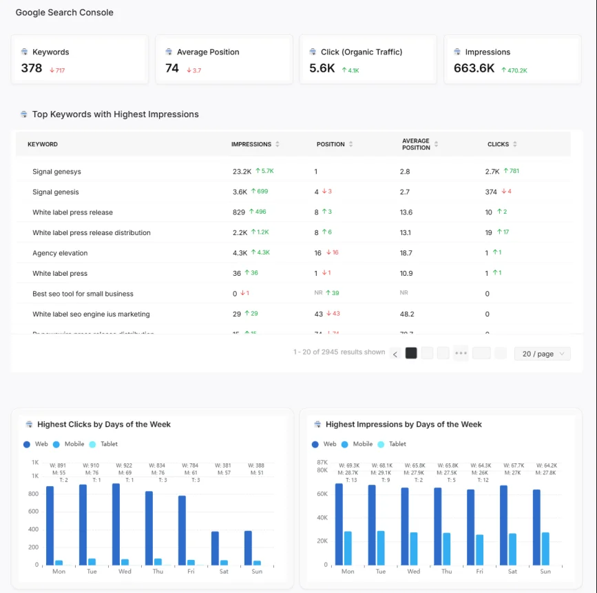 - Executive Summaries with Medical Traffic and Keyword Growth. Visualize month-over-month movement across organic clicks, health ranking keywords, and medical SERP performance. Detect spikes tied to specific medical campaigns or health content updates in seconds.