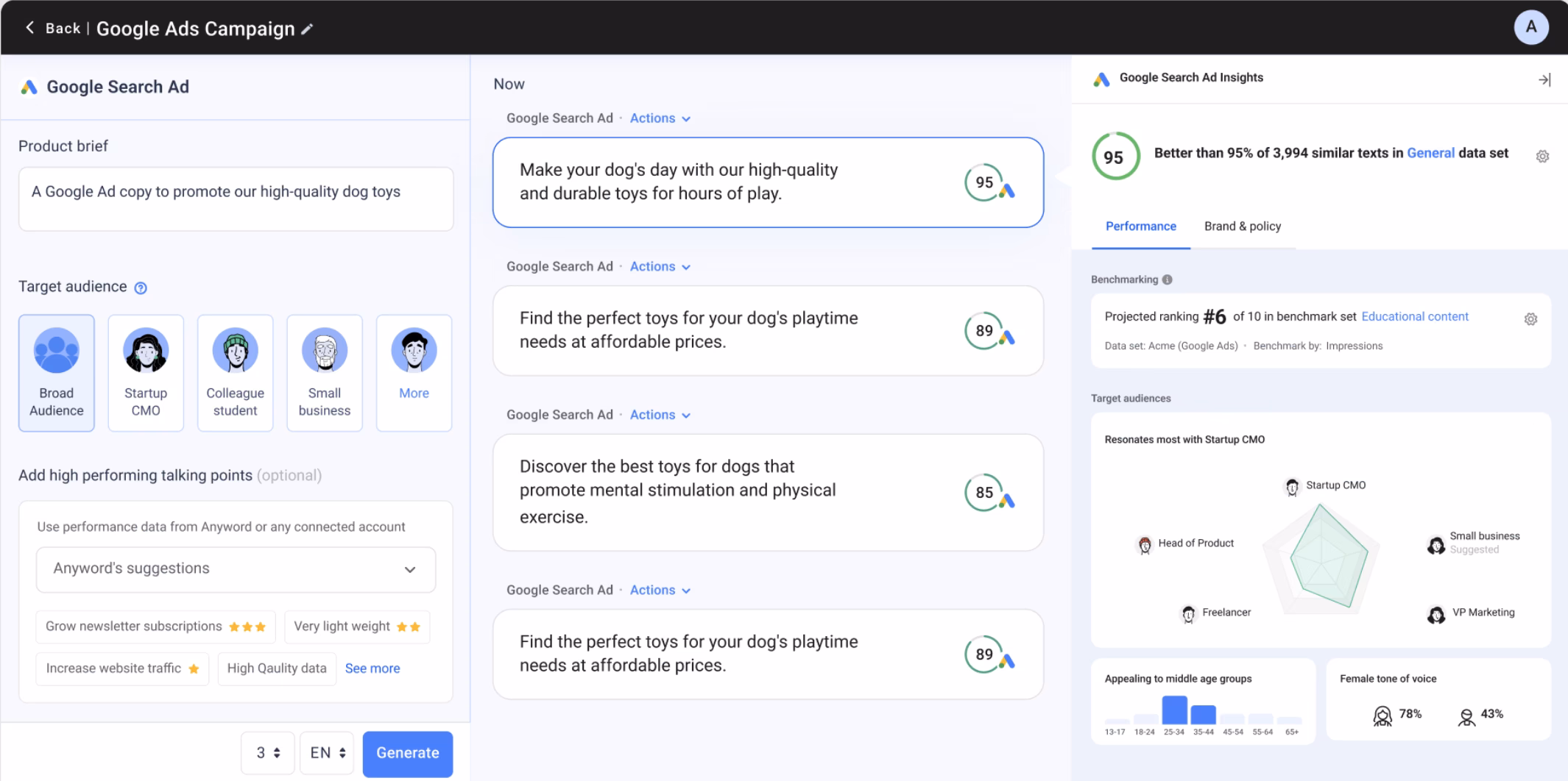 | 15 | Anyword | Conversion-focused copy variants | $49 to $499/month |