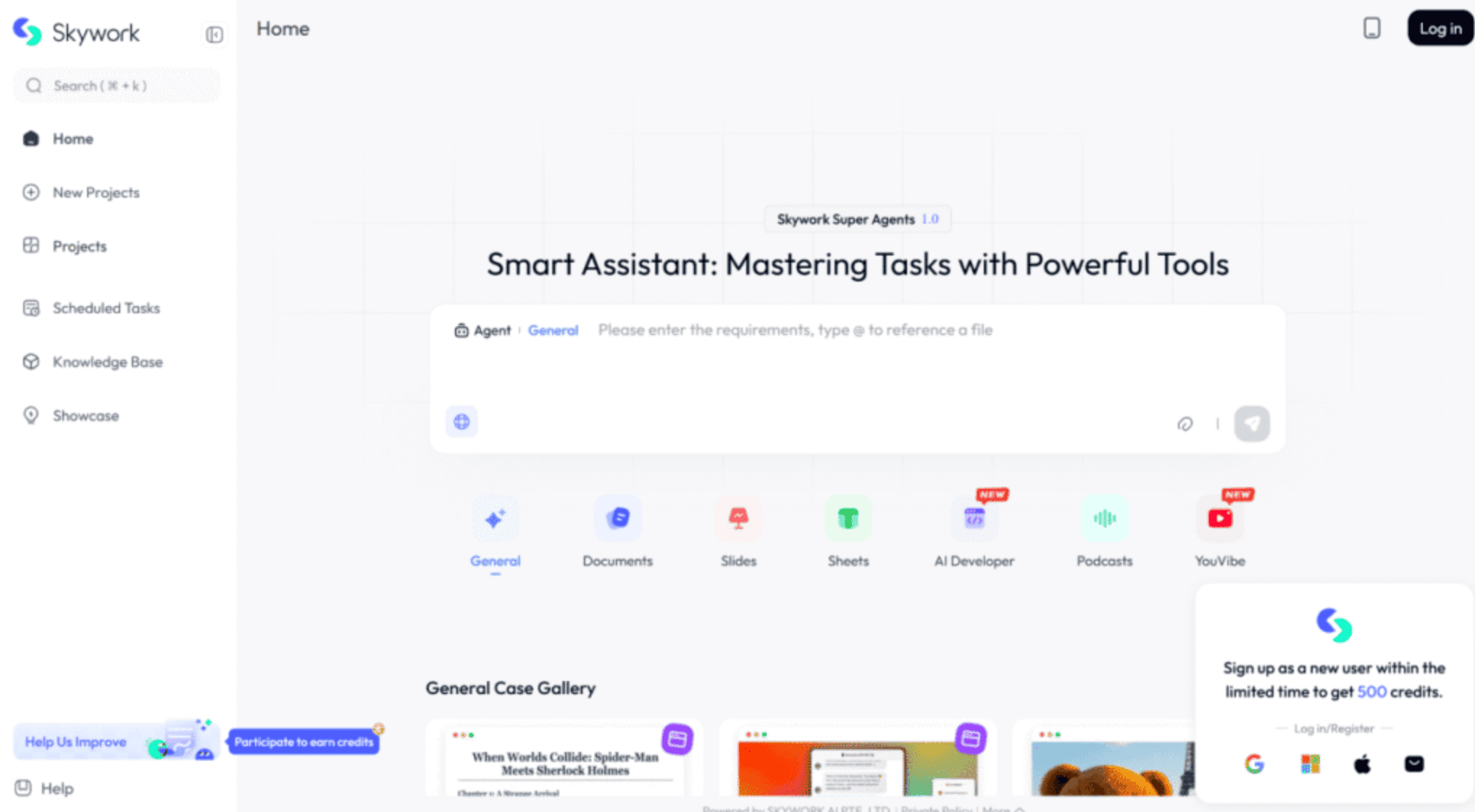 Skywork.ai is an AI workspace built around research-driven content production rather than basic text editing. Skywork.ai uses specialized agents to generate structured outputs such as reports, presentations, spreadsheets, websites, and scripts with source-backed validation.