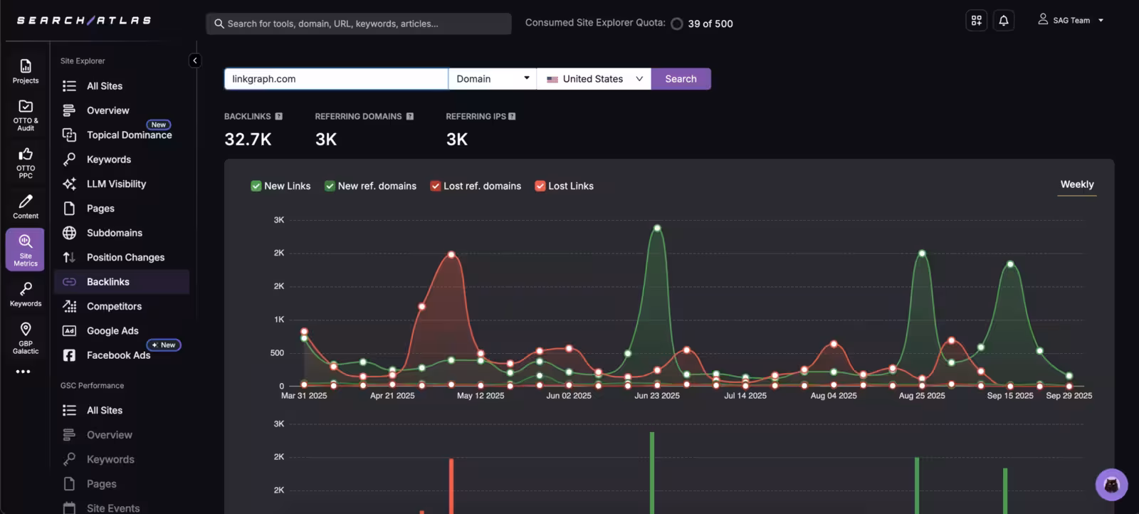 In your Search Atlas dashboard, go to the “Site Metrics” tab and select “Site Explorer”.